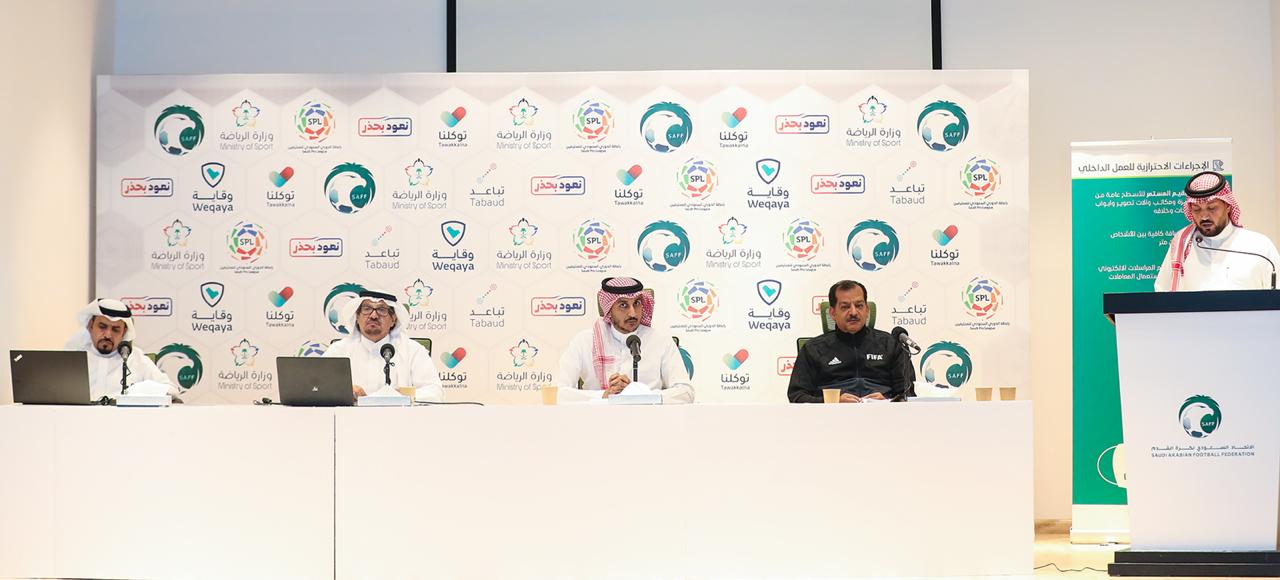 أقام الاتحاد السعودي لكرة القدم وبالتعاون مع رابطة الدوري السعودي للمحترفين، الندوة الإرشادية لاستئناف المسابقات الكروية السعودية وذلك في مقر الاتحاد بالرياض بمشاركة رئيس لجنة مراقبي ومنسقي المباريات برابطة الدوري السعودي للمحترفين المهندس سلمان النمشان، ورئيس اللجنة الطبية في الاتحاد الدكتور صالح الحارثي، ونائب رئيس لجنة الحكام يوسف ميرزا.