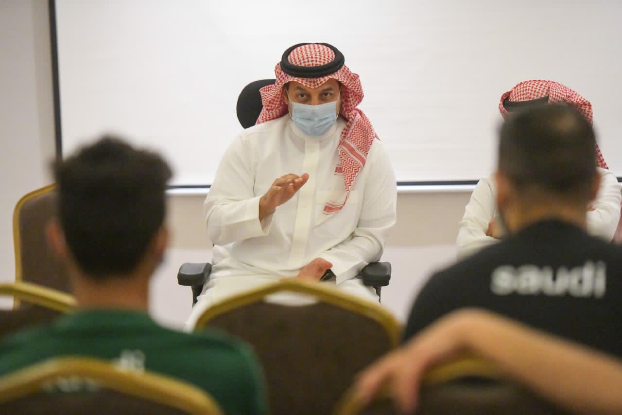 المسحل يجتمع بلاعبي الأخضر الأولمبي في معسكر الرياض